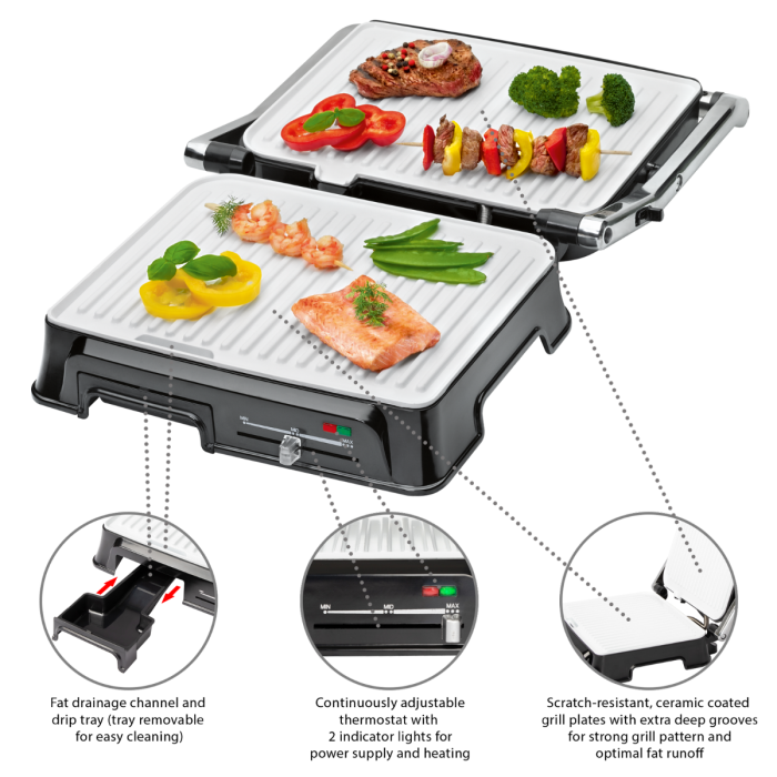 • Utilisation polyvalente, par exemple pour les paninis, les steaks, le poisson ou les légumes