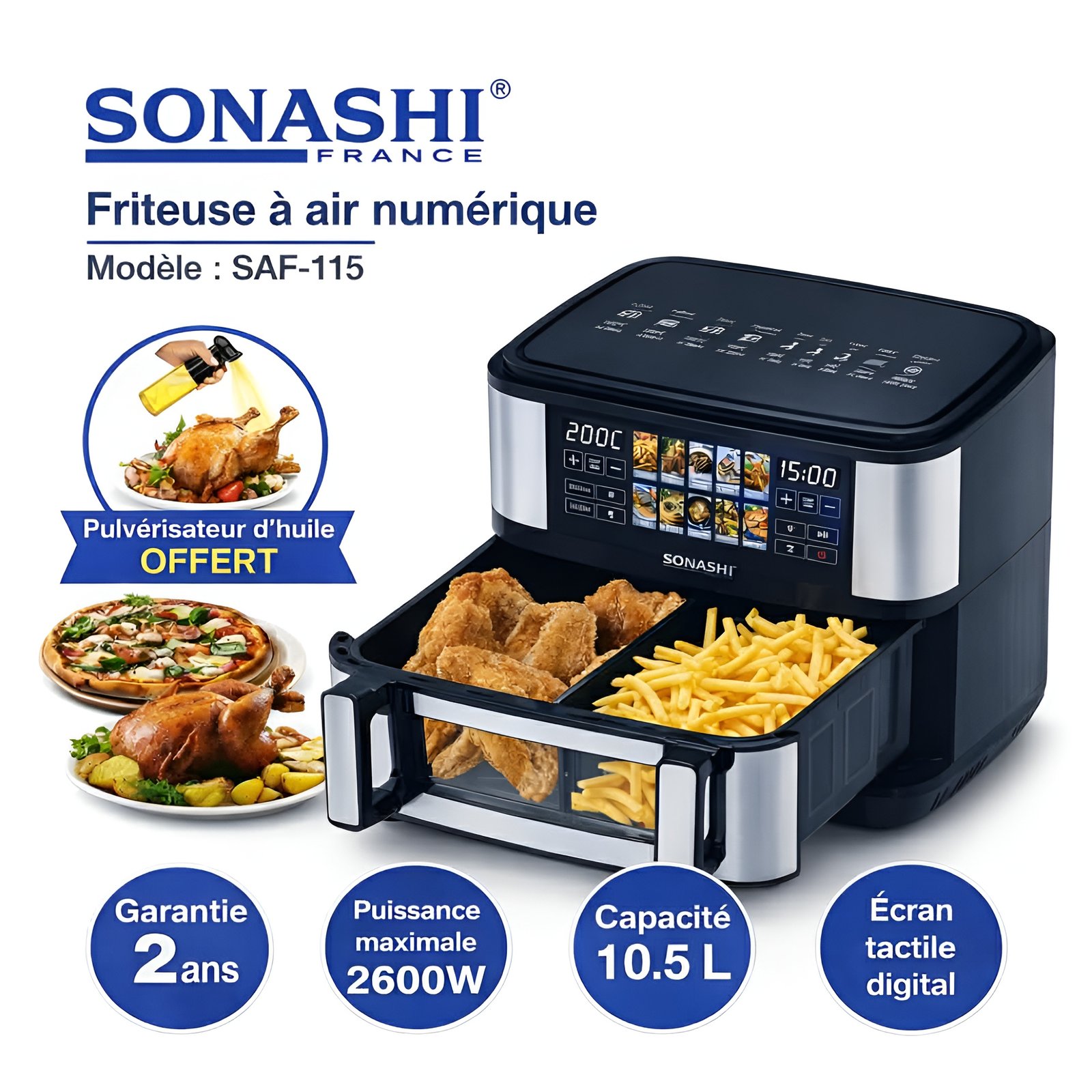 Technologie : Cuisson par air chaud rapide avec jusqu’à 80% moins de graisse.