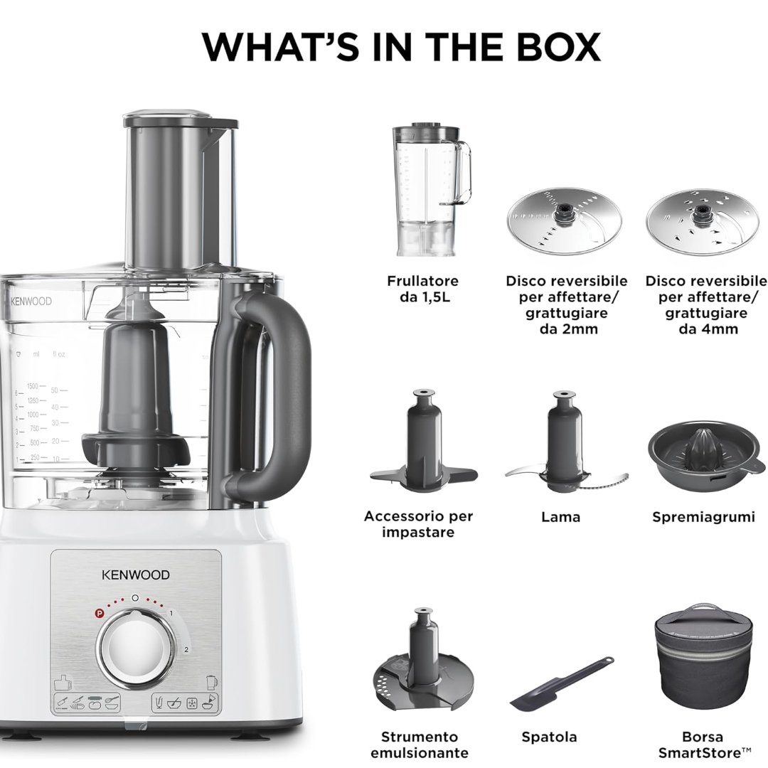Robot Multifonction Kenwood Multipro Express FDP65.450WH 1000W Découvrez la puissance et la performance avec le Kenwood Multipro Express FDP65.450WH, un robot multifonction tout-en-un idéal pour toutes vos préparations en cuisine. Grâce à son moteur puissant de 1000W, il vous permet de mixer, hacher, couper et préparer vos recettes بسهولة و بسرعة.