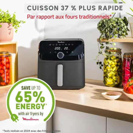 - Consomme jusqu’à 70% moins d’énergie et cuit jusqu’à 37% plus vite