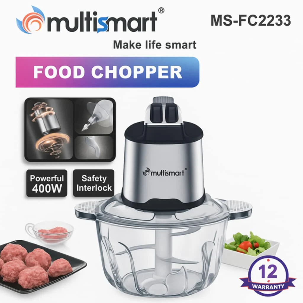 Multismart Hachoir Électrique 3L 400W en Verre – 6 Lames Inox | Mincuteur de Viande et Légumes x1د.ج 3900