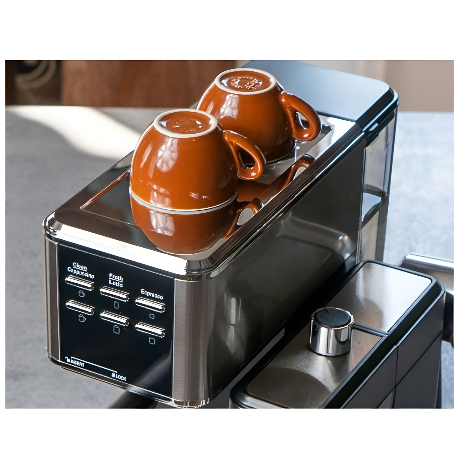 Sensation de barista à la maison – La fonction permanente de préchauffage des tasses, les boutons de commande éclairés et le réservoir d’eau amovible (1,2L) de la machine à café complètent l’expérience de café parfaite.