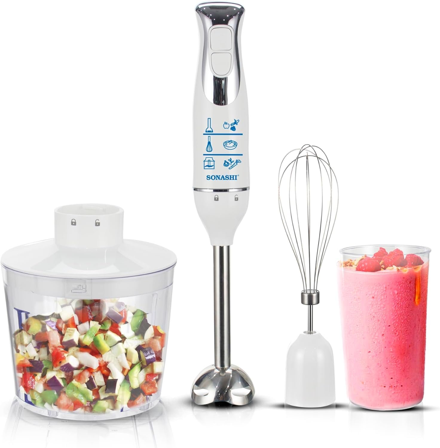 Sonashi Bras Mixeur Multi Fonction 4 En 1- SHB-187JCW – Blanc
