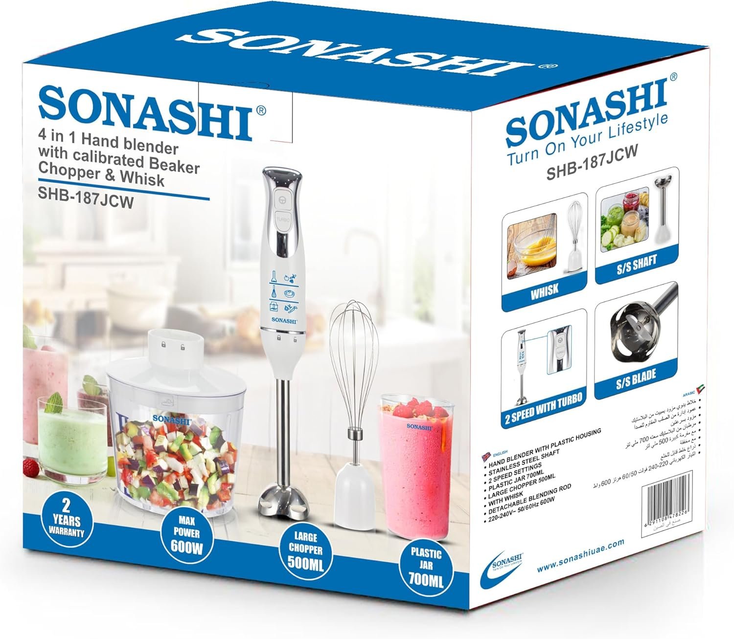 Sonashi Bras Mixeur Multi Fonction 4 En 1- SHB-187JCW - Blanc x1د.ج 5900