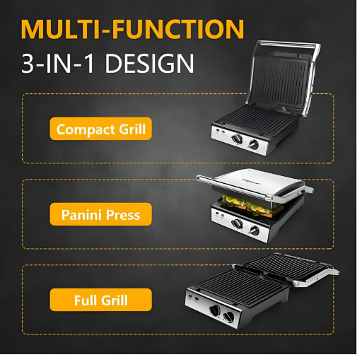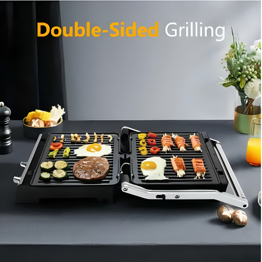 Caractéristiques Principales : Ouverture à 180 degrés : Offre une surface de cuisson doublée, idéale pour préparer de grandes quantités.